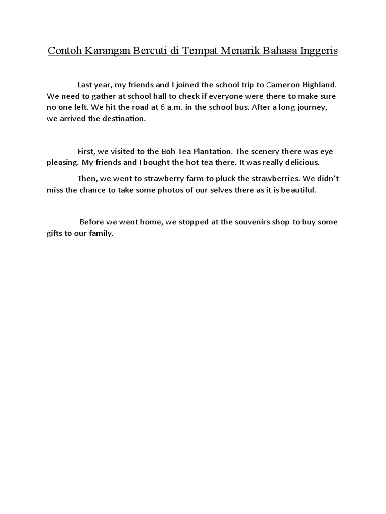 Contoh Karangan Bercuti Di Tempat Menarik Bahasa Inggeris Pdf